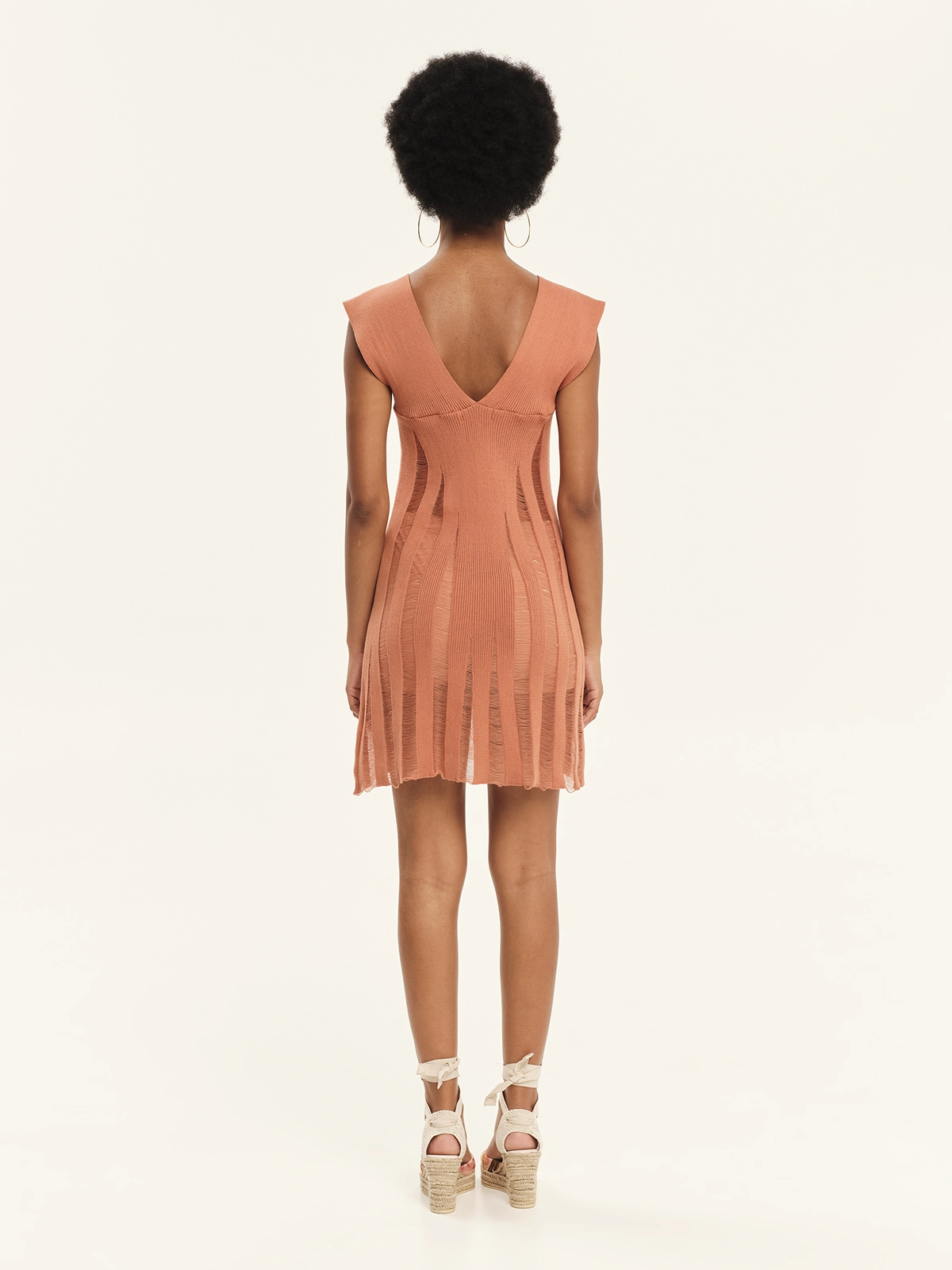 KOURBELA – Φόρεμα με βαθύ V και εντυπωσιακές πλεκτές λεπτομέρειες