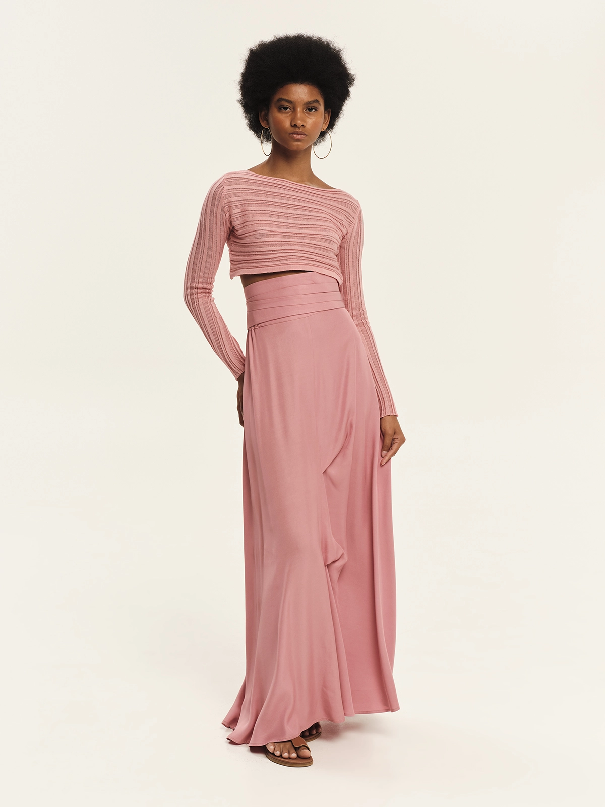 KOURBELA – Women’s Dusty Rose High-Waisted Maxi Skirt